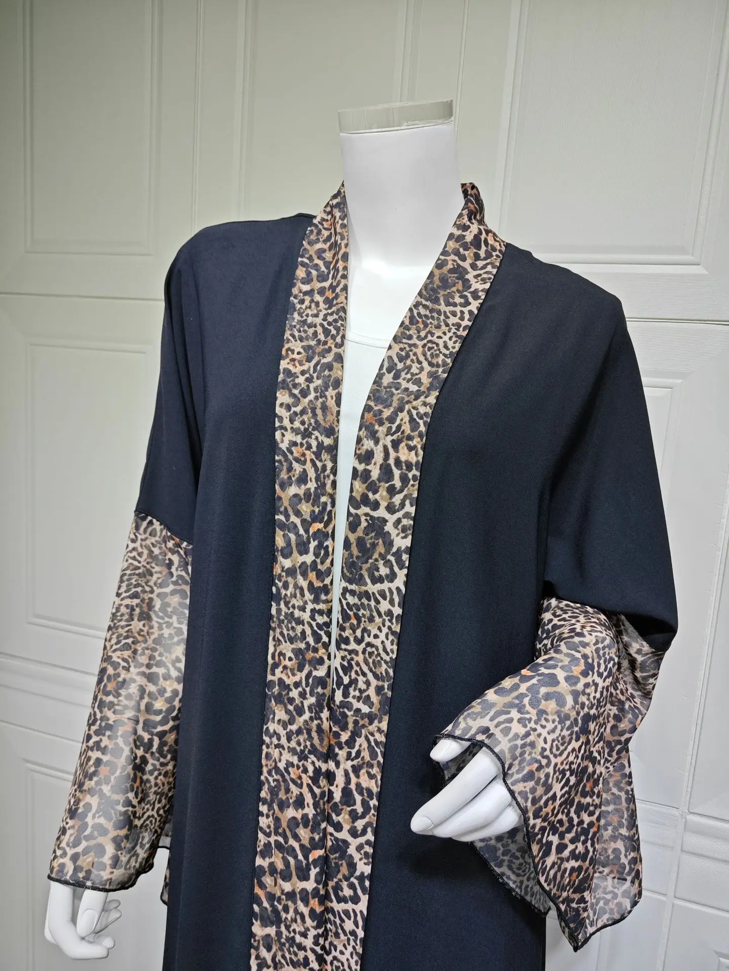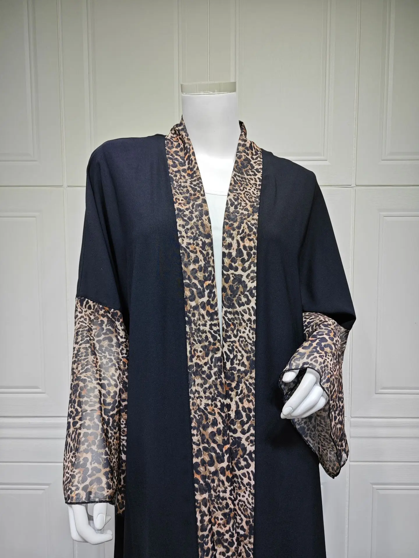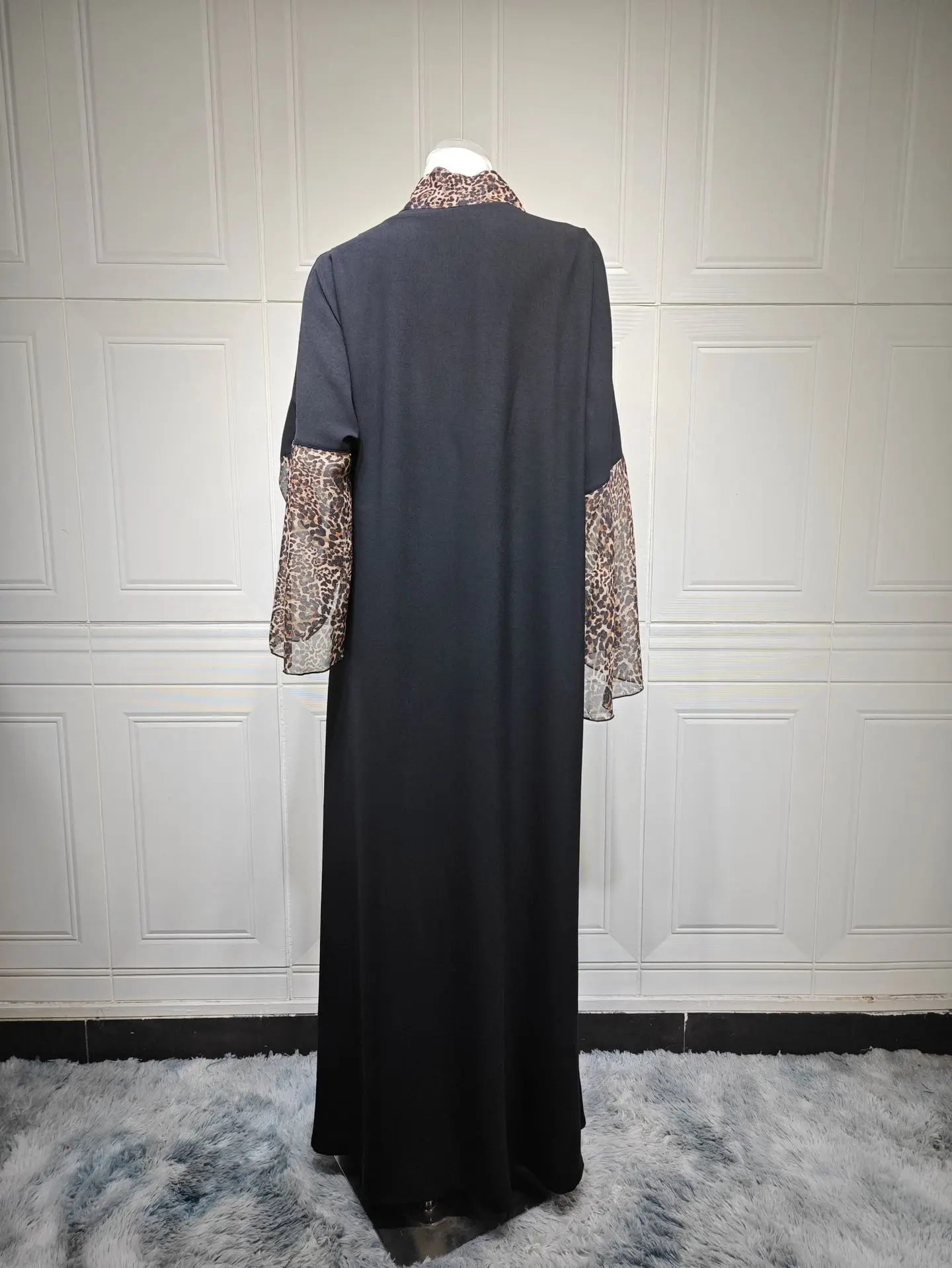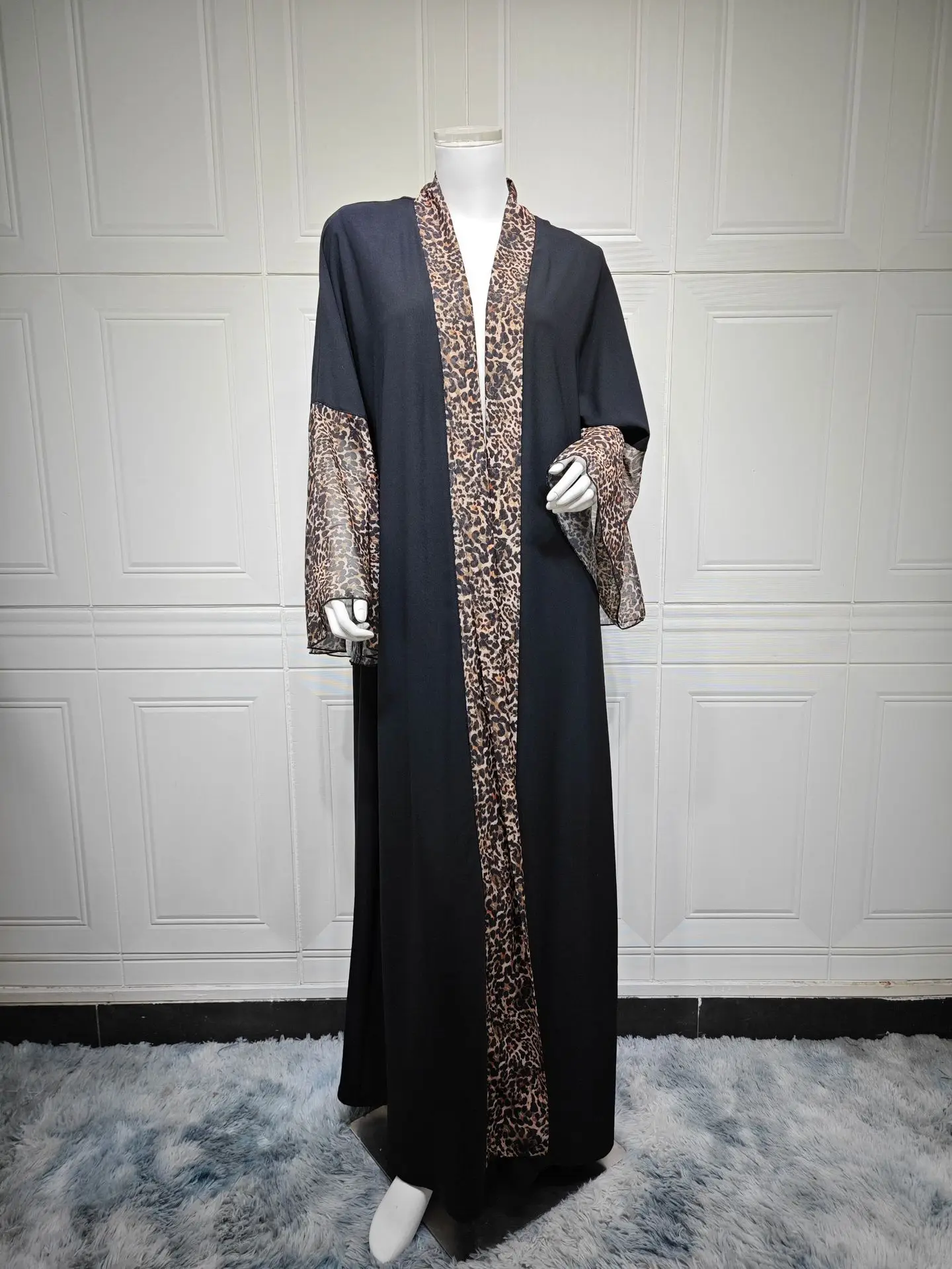 MQ194 Uni Fashion Leopard Print Maxi Abaya Dubai Patchwork Sleeve Hijab included Muslim Woman Costume 2025