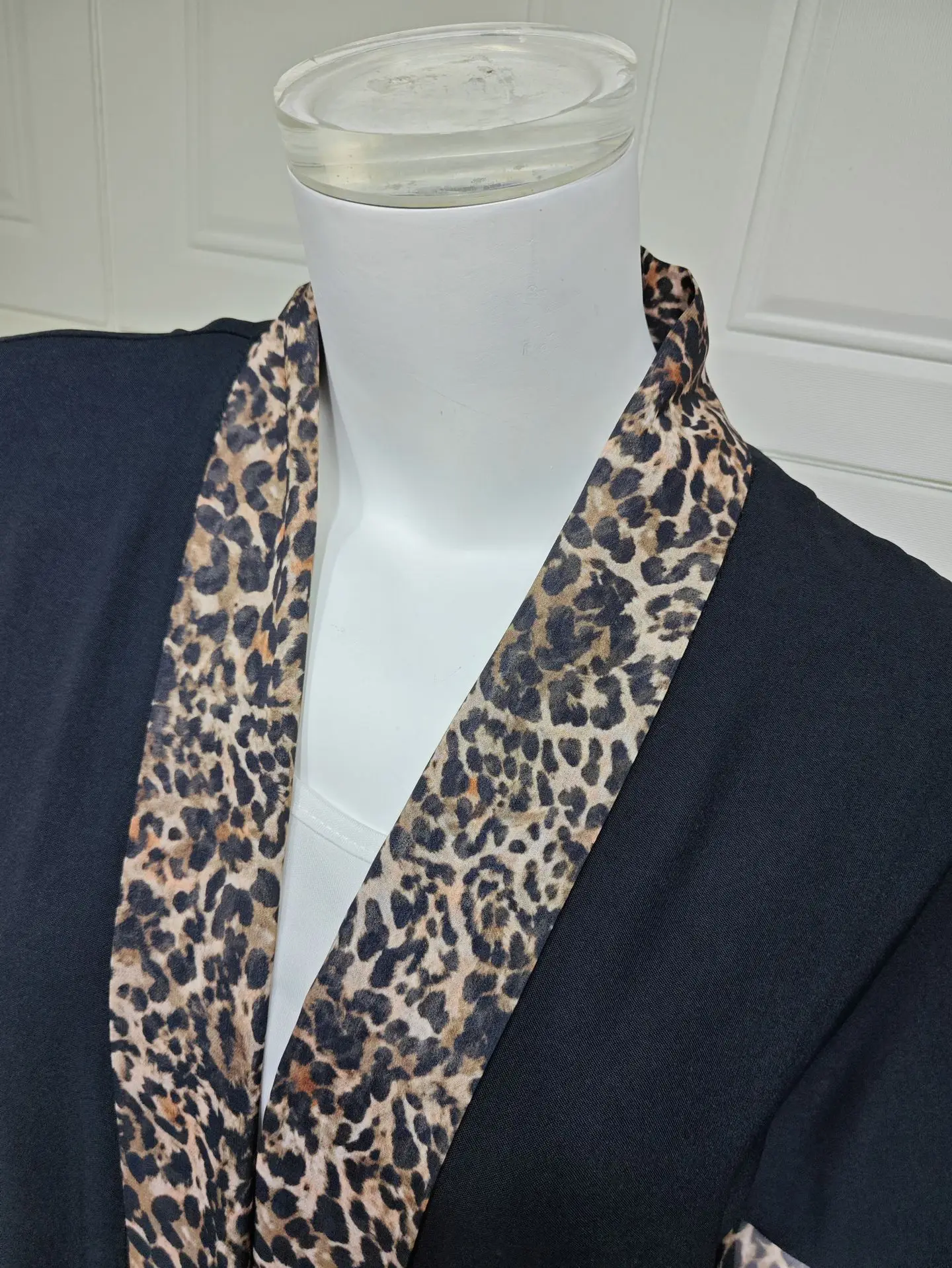 Great Uni Fashion Leopard Print Maxi Abaya Dubai Patchwork Sleeve Hijab included Muslim Woman Costume 2025!