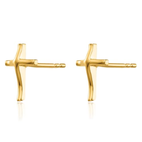 14K Solid Yellow Gold Holy Cross Drop Dangle Christian Religious Stud Earrings 1