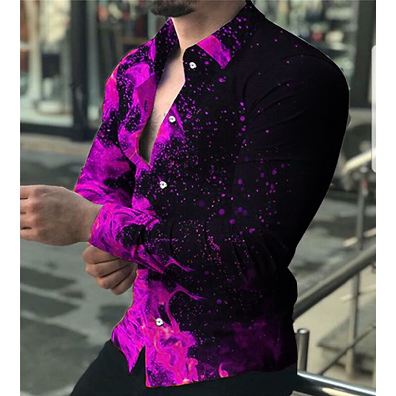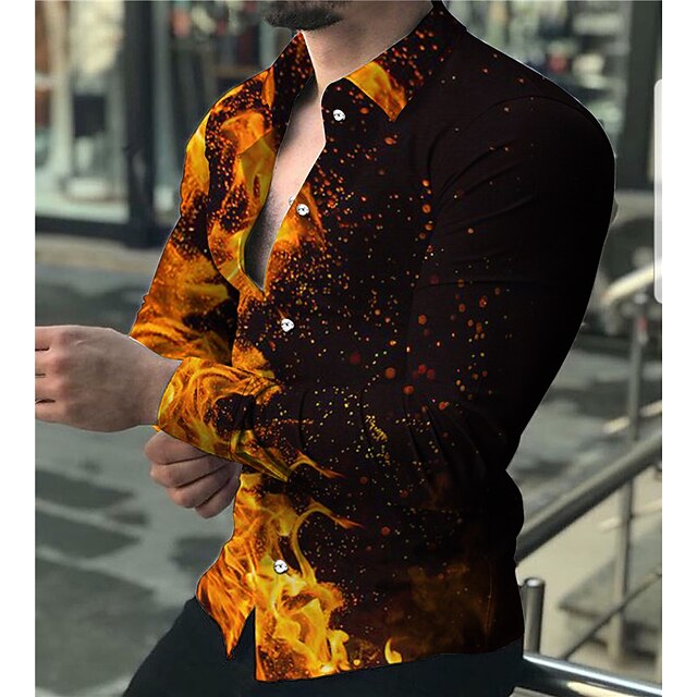 More information about Men's Flame Shirt Button Up Shirt Long Sleeve Fashion Designer Casual Daily Holiday Going out Spring & Summer Turndown 3D Print Button-Down Light Yellow Yellow Purple Green