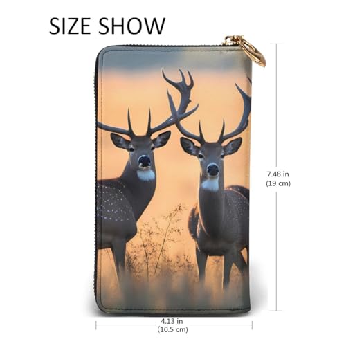 HOT ! Nature Wild Animal Deers Prints Leather Long Clutch Wallet for Fashionable Girls and Women - Durable, Stylish, and Functional, Black, One Size