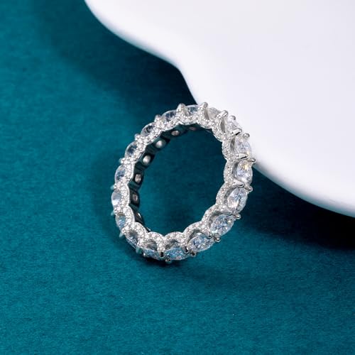 HOT ! WES Wedding Band Ring for Women, 5.3cttw D Color VVS1 Lab Created Diamond Ring,Round Cut Sterling Silver Moissanite Eternity Ring, Anniversary Engagement Stackable Rings (6)