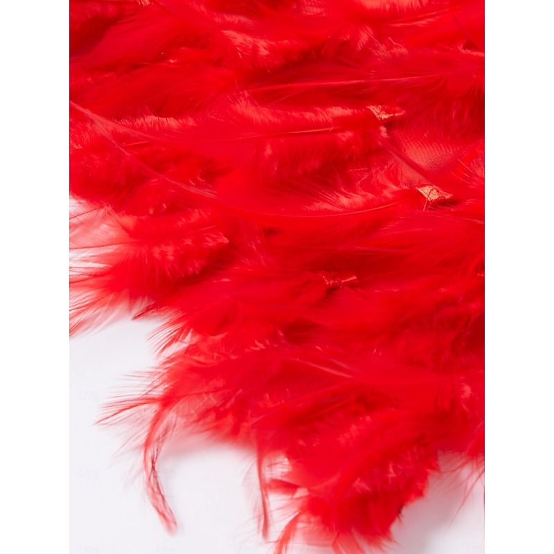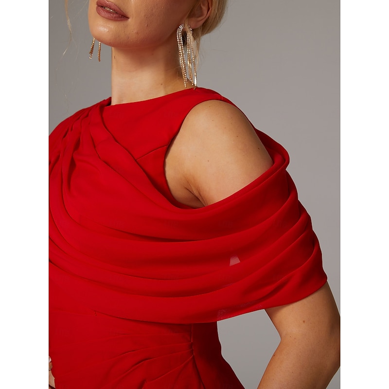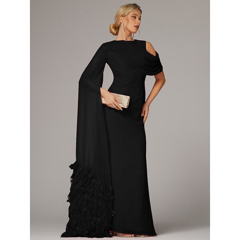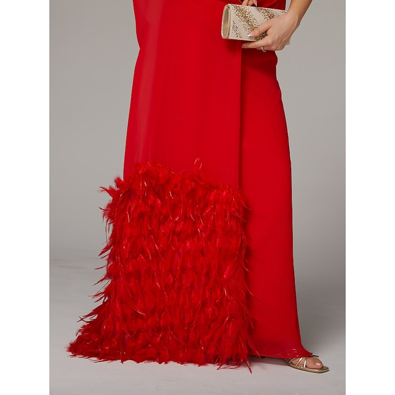 More information about Sheath Evening Gown Elegant Dress Formal Fall Sweep / Brush Train Sleeveless Floor Length Cowl Neck Chiffon with Feather Ruched Slit