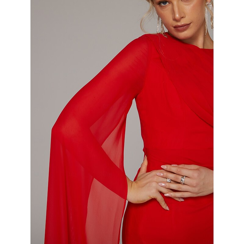 : Designed in a sheath/column style, this evening gown hugs the body beautifully, highlighting the wearer's natural silhouette. The cut is both elegant and timeless, presenting a refined look for any formal occasion.