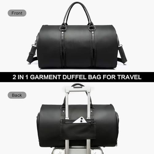 HOT ! Garment Duffle Bags for Travel, OEIPSMK Convertible Carry on Leather Garment Bag for Men Women, 2 in 1 Waterproof Weekender Suit Travel Bags with Shoe Compartment for Traveling & Business Trips, Black