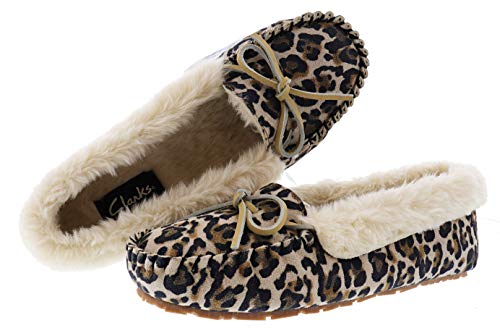 HOT ! Clarks Women's Dolly Indoor Outdoor Faux Fur Slippers (9 M US, Tan Leopard Suede)