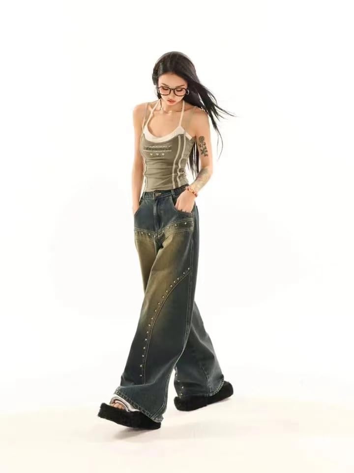 More information about Y2k Grunge American Vintage Patchwork Wide Leg Jeans Hip Hop Casual Baggy Trendy High Waist Loose Streetwear