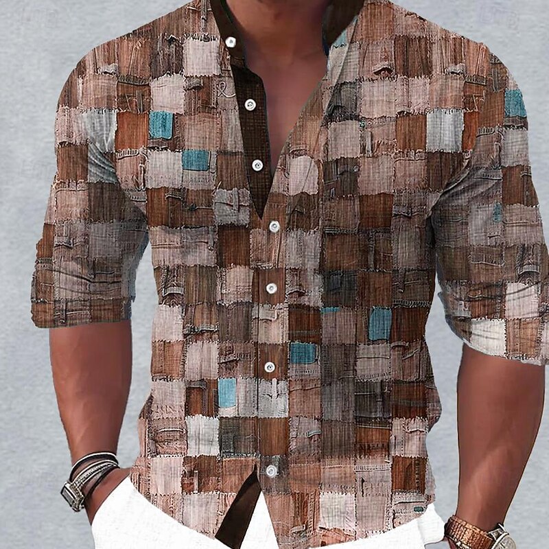 More information about Men's Plaid Geometric Pattern Shirt Button Up Shirt Long Sleeve Casual Daily Holiday Summer Spring & Fall Standing Collar Buttons Print Pink Blue Plum Purple