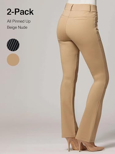 HOT ! Conceited 2-Pack Stretch Slacks for Women - Wear to Work - Bootcut Dress Pants with Pockets - All Pinned Up, Khaki - (Large)