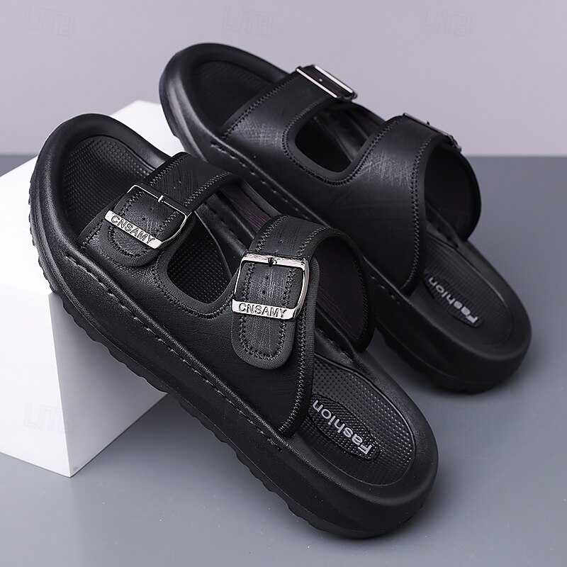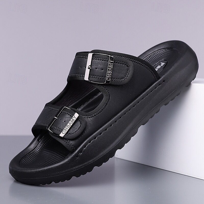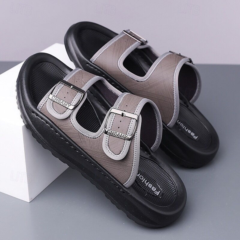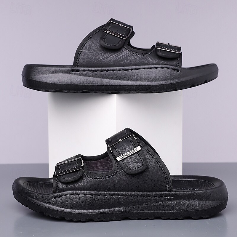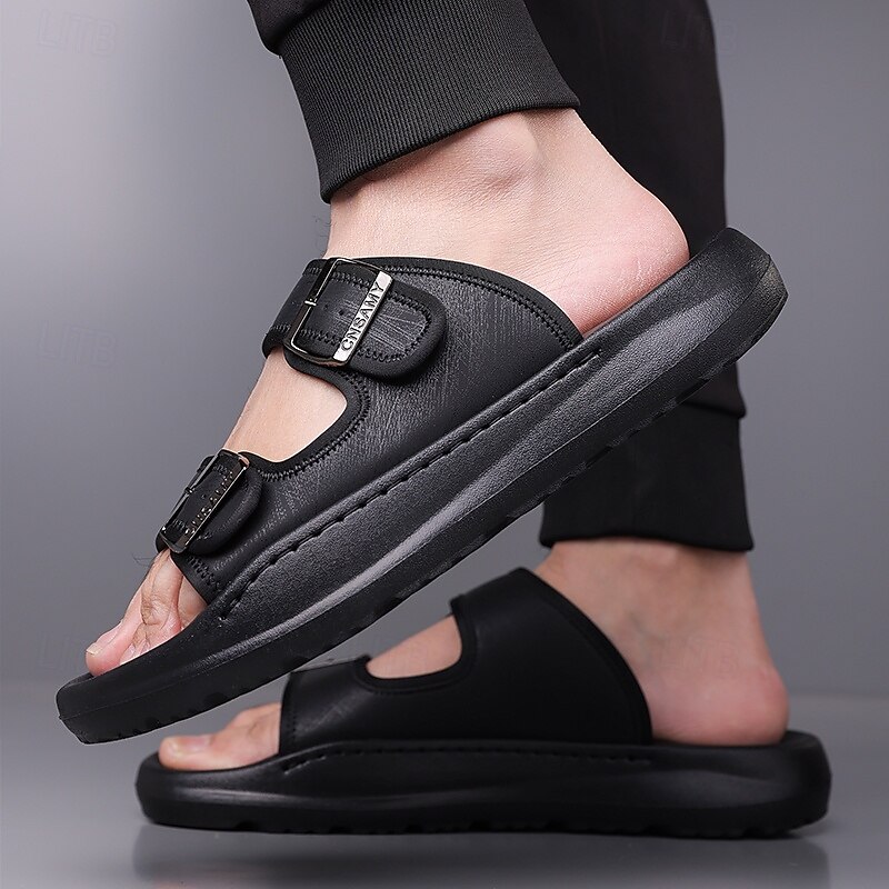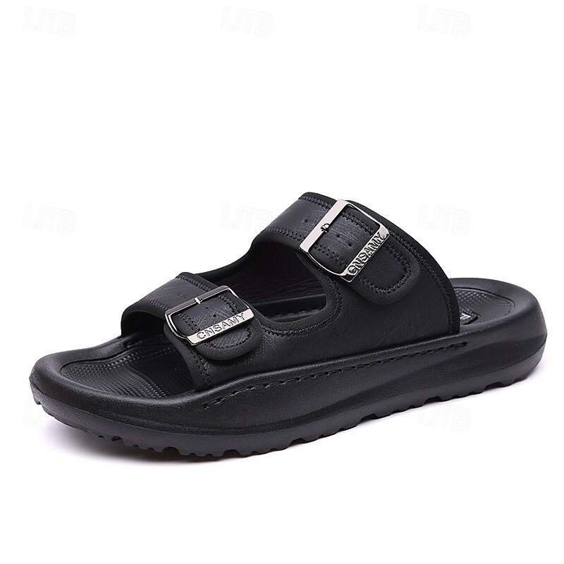 HOT ! Men's Brown Two-Buckle Faux Leather Sandals with Comfortable Footbed and Durable Sole – Adjustable Slip-On Summer Shoes for Casual and Outdoor Wear
