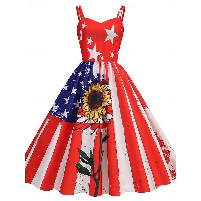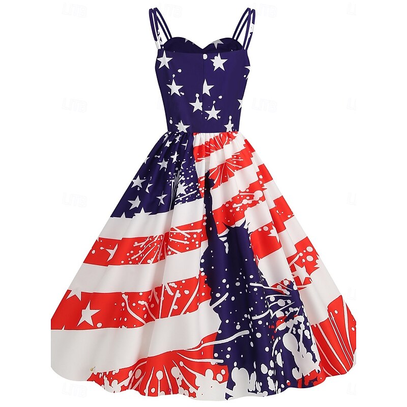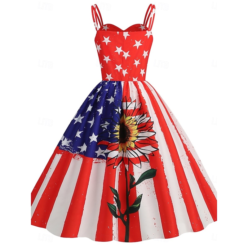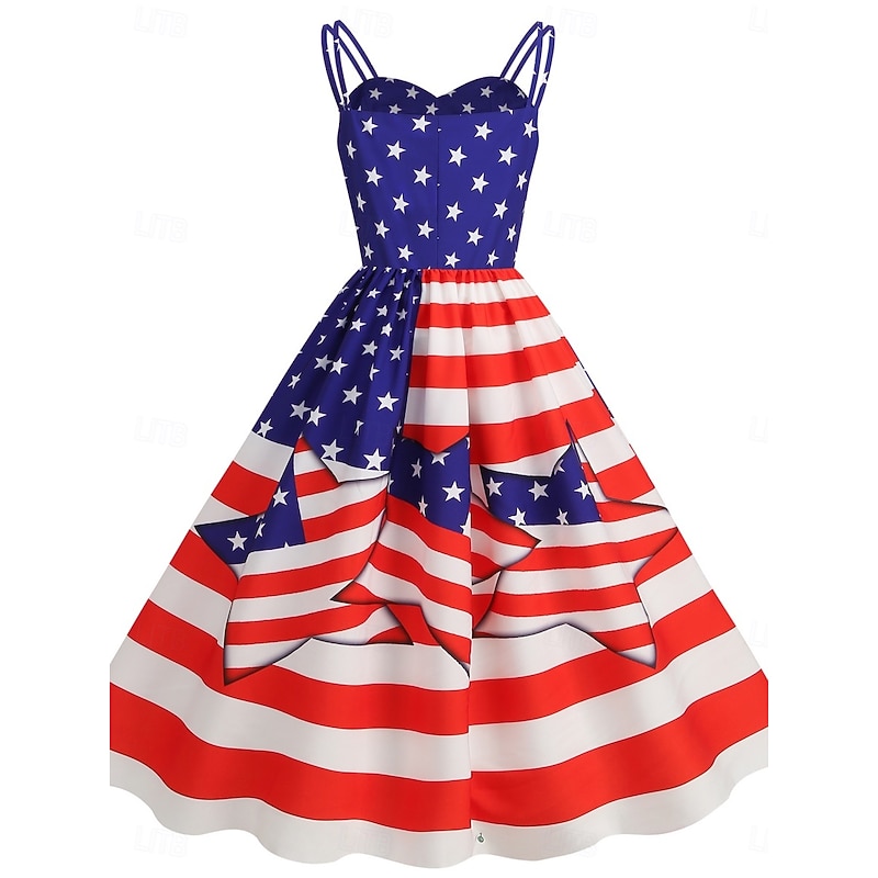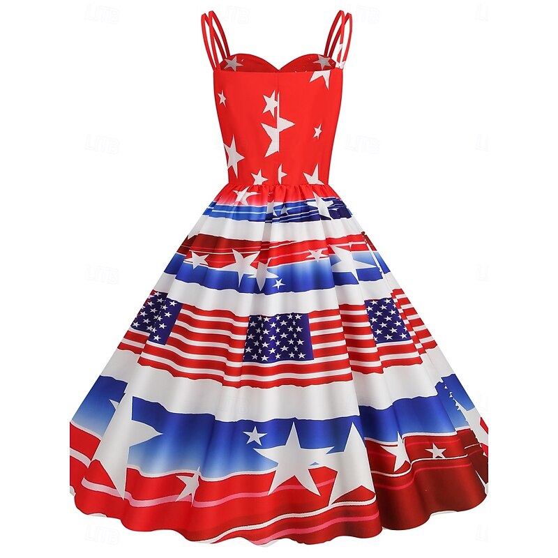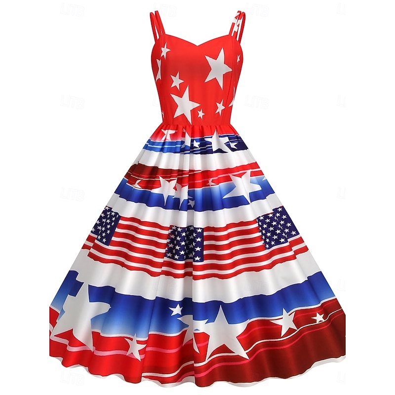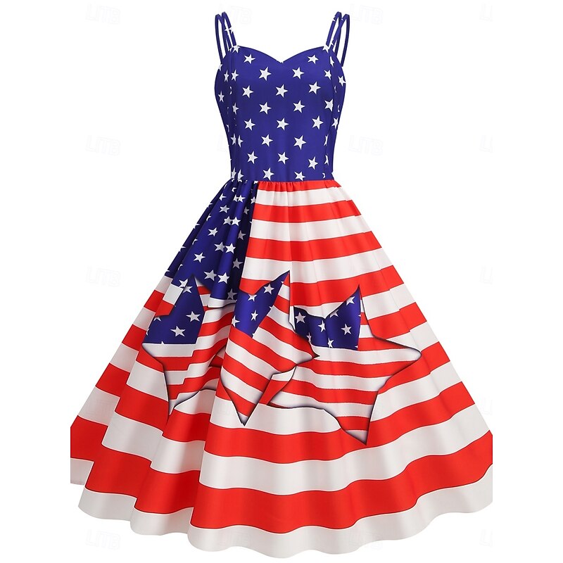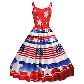More information about Women's Patriotic Mini Dress A Line Dress Slip Dress Off The Shoulder Dress Casual Outdoor Going out Regular Fit American Flag Sleeveless Spaghetti Strap