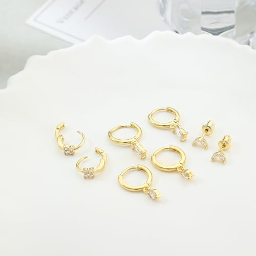 Stud Earrings for Women Dainty Small Hoop Earrings 14K Gold/Silver Plated Cartilage Earring Set CZ Dangle Huggie Earrings Lightweight Hypoallergenic Earrings Trendy Multiple Piercings Jewelry 5
