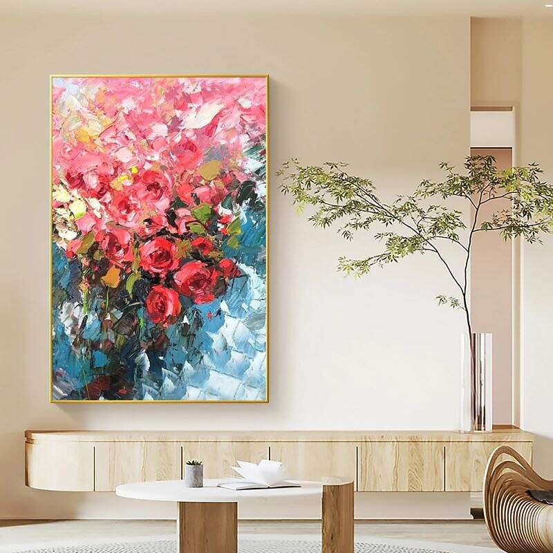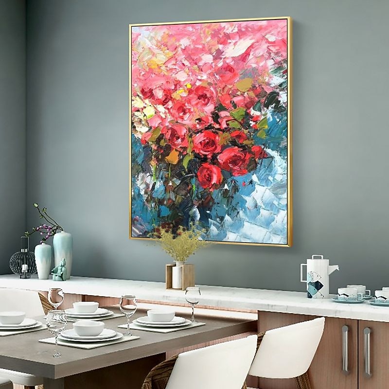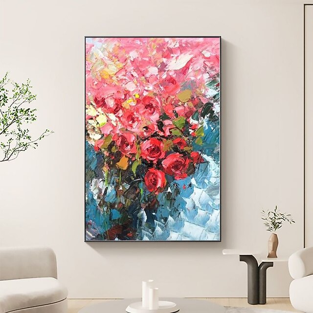 More information about Handmade Oil Painting CanvasWall Art Decoration Abstract Knife Painting Flower Red For Home Decor Rolled Frameless Unstretched Painting