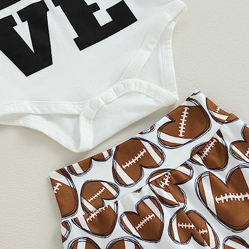 BULINGNA 3Pcs Infant Baby Girl Football Season Outfits Love Bodysuit Romper Heart Shape Football Flared Pants with Headband 4