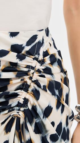 • Polka-dot animal print, Ruched waist, Asymmetrical hem