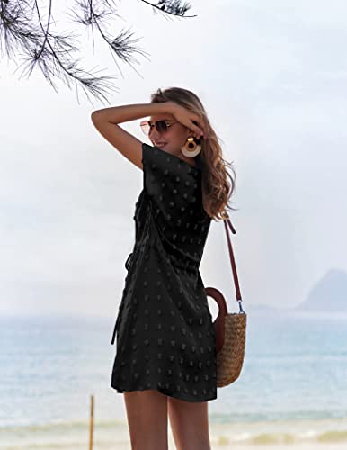 Ekouaer Womens Swimsuit Cover Up Swiss Dots Chiffon Bikini Beachwear Flowy Pom Pom Coverups 4