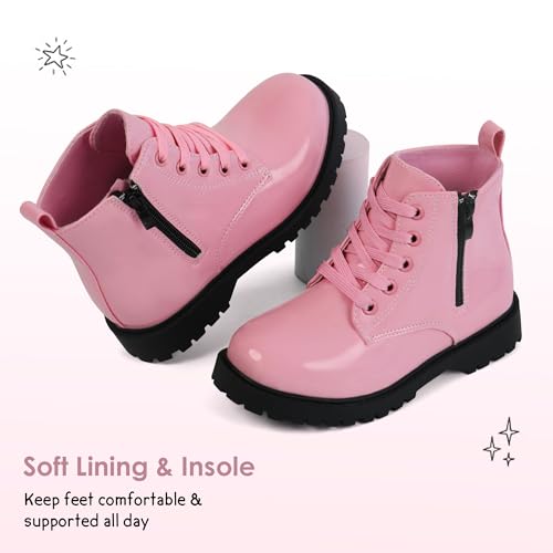 JABASIC Girls Ankle Boots Side Zipper Lace Up Work Boot Combat Booties for Little/Big Kids 4