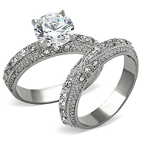 More information about Marimor Jewelry 3.25 Carat Round Cut Cubic Zirconia Vintage Stainless Steel Wedding Ring Set Women's Size 5-10