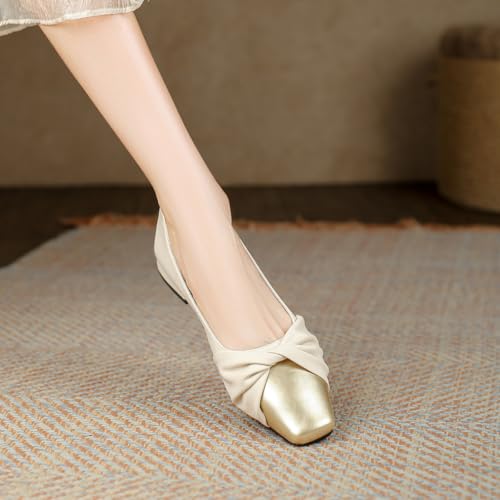 Women Comfy Closed Square Toe Ballet Flats Slip On Low Heel Pleated Ballerina Shoes Ballroom Party Daily Size 4-16 US 6
