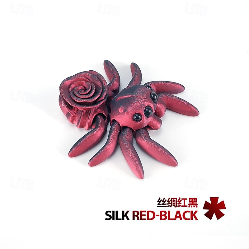 Halloween 3D Printed Rose Spider Figurine, Large Poseable Spider Toy with Movable Joints, Retractable Articulated Animal Model for Halloween Decoration or Prank Props 1