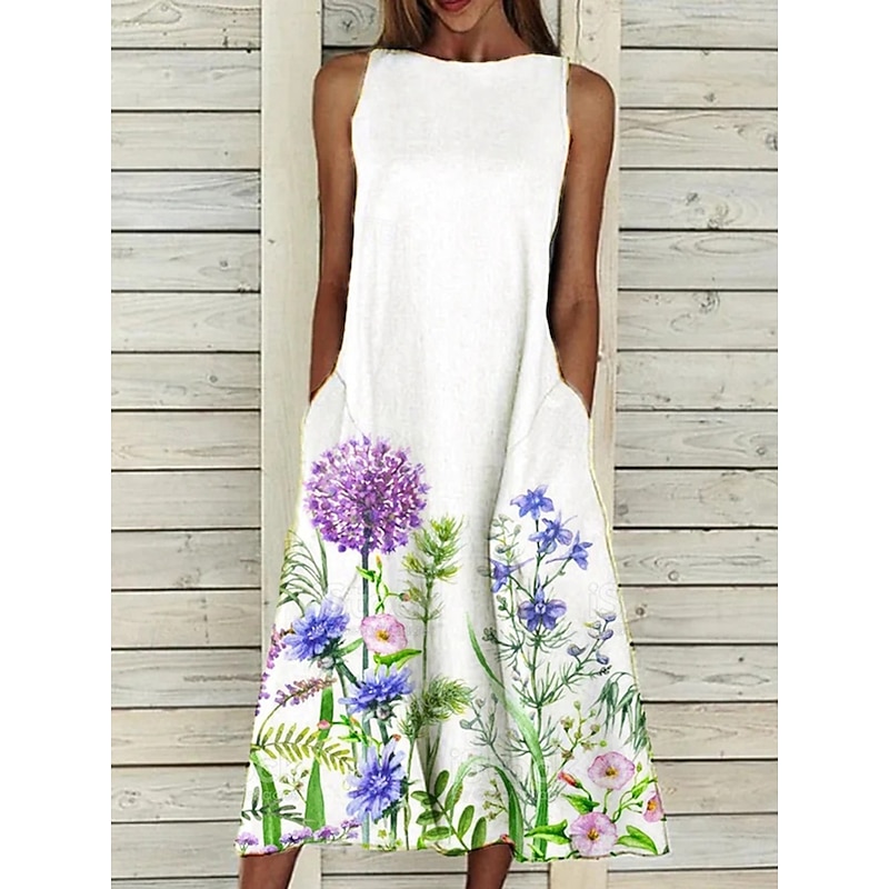 HOT ! Women's Midi Dress A Line Dress T Shirt Dress Tee Dress Off The Shoulder Dress Athletic Dress Casual Vacation Daily Regular Fit Floral Sleeveless Off Shoulder Yellow Red Blue Purple Summer