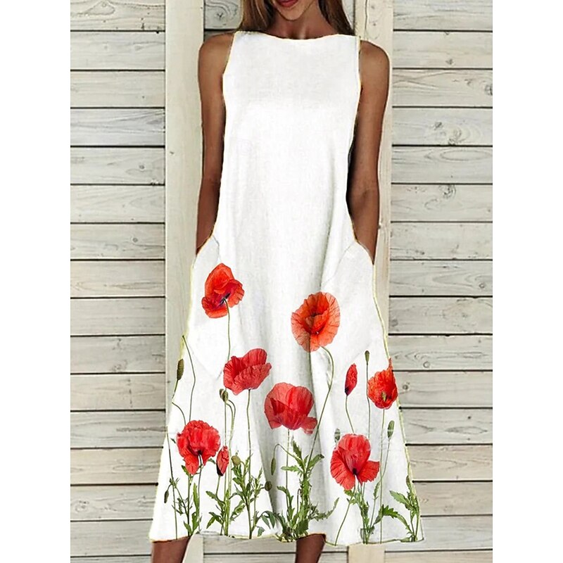 More information about Women's Midi Dress A Line Dress T Shirt Dress Tee Dress Off The Shoulder Dress Athletic Dress Casual Vacation Daily Regular Fit Floral Sleeveless Off Shoulder Yellow Red Blue Purple Summer