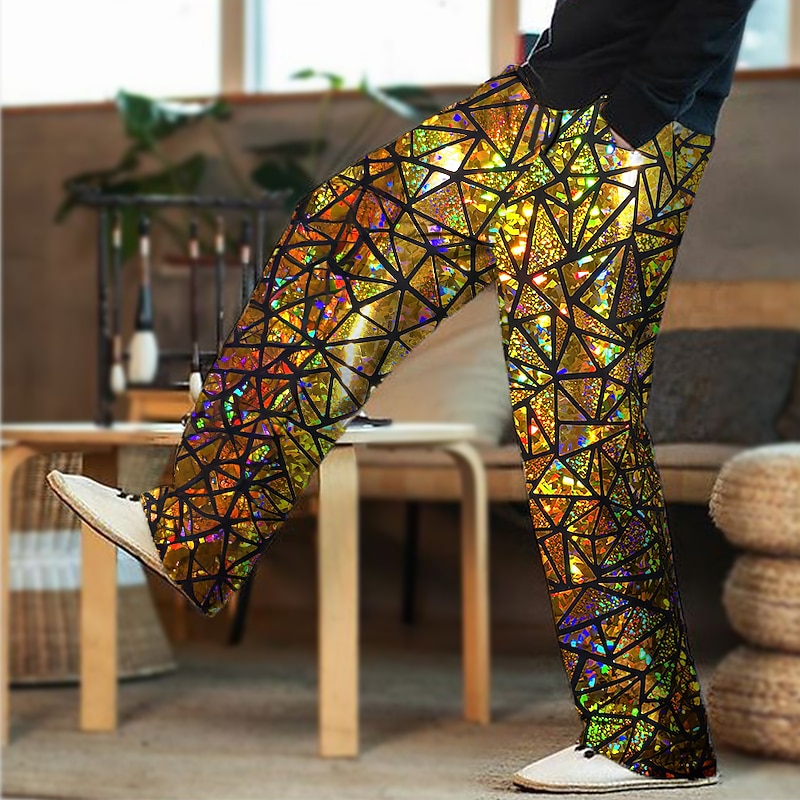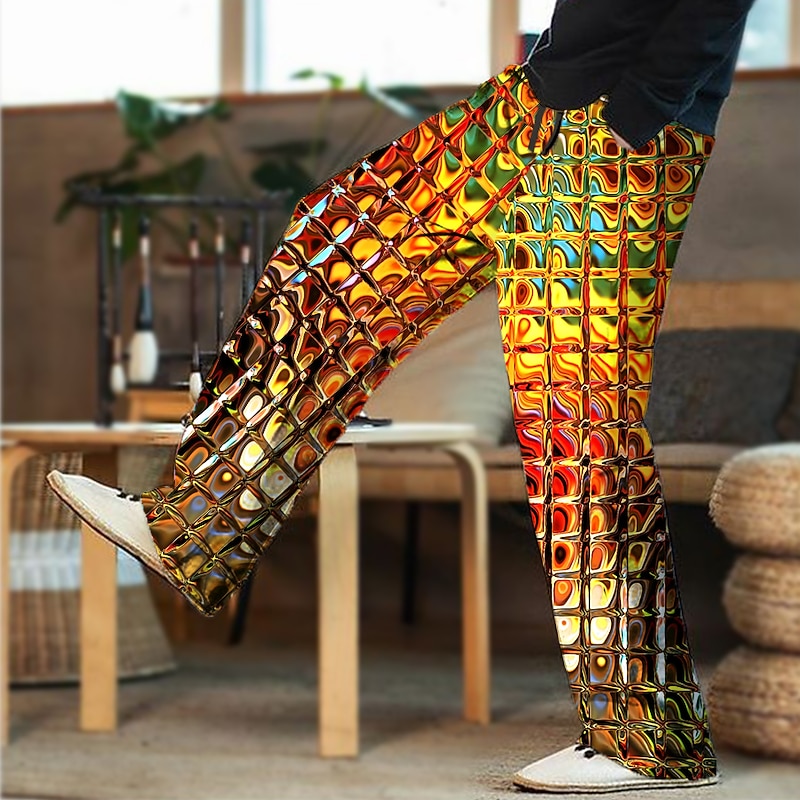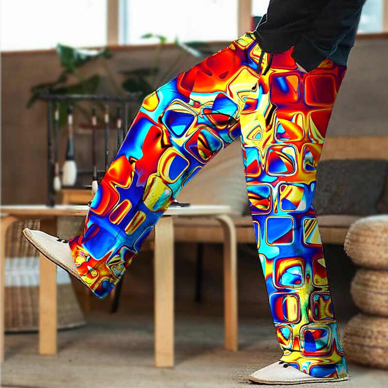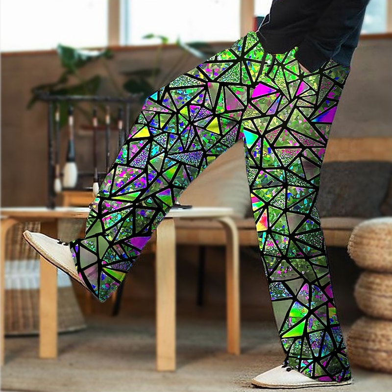 More information about Men's Trousers Summer Pants Beach Pants Drawstring Elastic Waist 3D Print Color Block Graphic Prints Geometry Comfort Casual Daily Holiday Streetwear Hawaiian Light Green Red