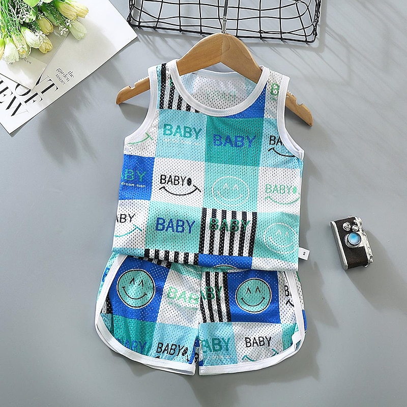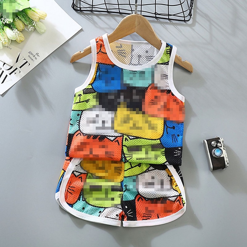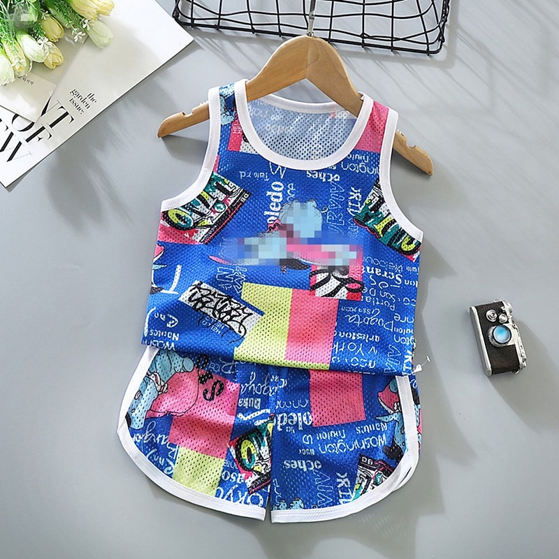 2 Pieces Toddler Boys Tank & Shorts Outfit Animal Cartoon Sleeveless Cotton Set Outdoor Fashion Daily Summer Spring 3-7 Years Blue dinosaur feather car 19