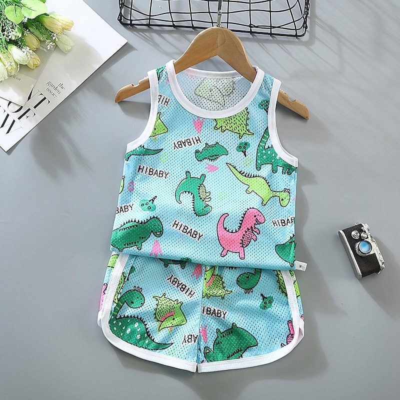 More information about 2 Pieces Toddler Boys Tank & Shorts Outfit Animal Cartoon Sleeveless Cotton Set Outdoor Fashion Daily Summer Spring 3-7 Years Blue dinosaur feather car