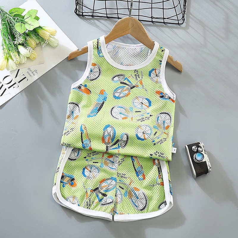 2 Pieces Toddler Boys Tank & Shorts Outfit Animal Cartoon Sleeveless Cotton Set Outdoor Fashion Daily Summer Spring 3-7 Years Blue dinosaur feather car 21