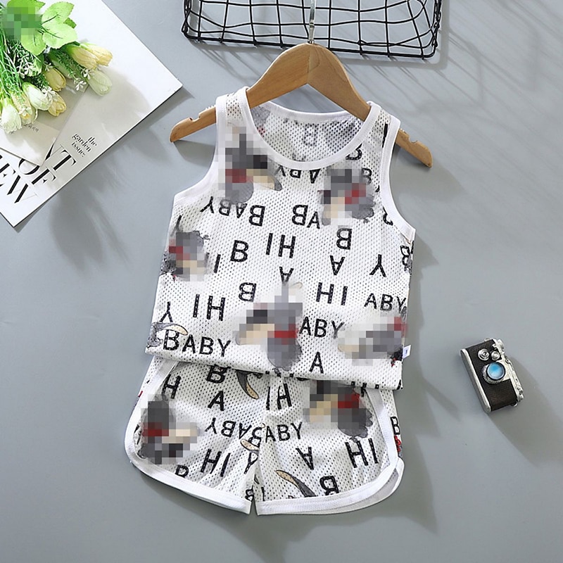 HOT ! 2 Pieces Toddler Boys Tank & Shorts Outfit Animal Cartoon Sleeveless Cotton Set Outdoor Fashion Daily Summer Spring 3-7 Years Blue dinosaur feather car