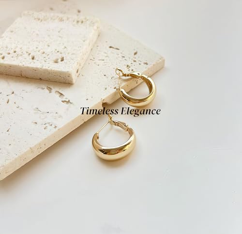 HOT ! 14K Real Gold Plated Hoop Earrings for Women,Small Gold Hoop Earrings for Women, Hypoallergenic 925 Sterling Silver Post, Lightweight Exquisite Wife Earring Mother Gift