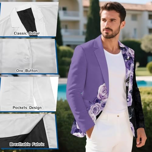 Lined Blazer for Men Slim Fit Sport Coat Print One Button Suit Jacket for Prom Wedding Party Dinner 1