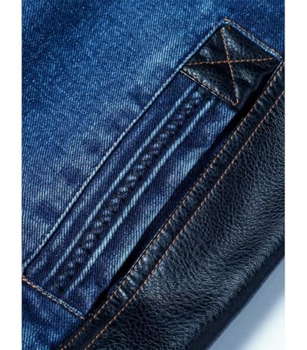 • 【Vintage Motorcycle Aesthetic】Inspired by classic biker jackets, this jean jacket for men boasts a vintage distressed wash and rugged detailing. The leather accents on the shoulders and sleeves add a bold, timeless appeal, making it a standout piece in any wardrobe.