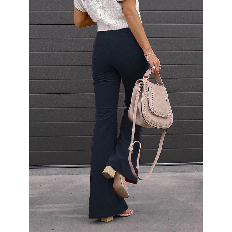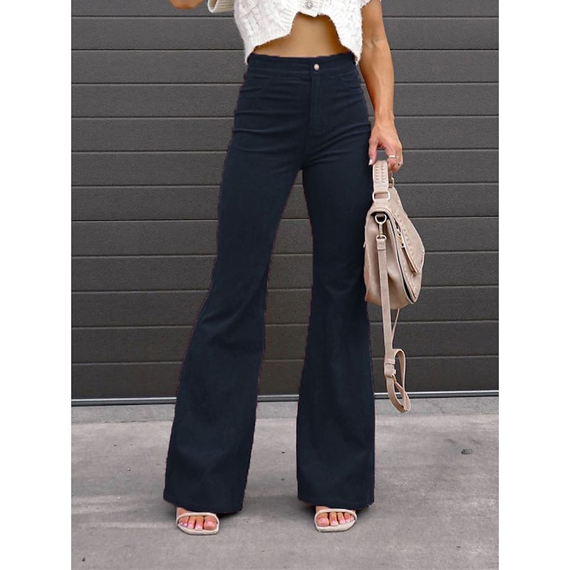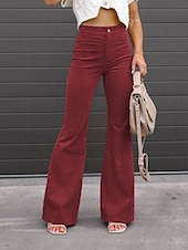 More information about Women's Bell Corduroy Flare Pants Bottom Trousers Full Length Pocket High Waist Fashion Streetwear Xmas Wine Black S M Winter Autumn Fall