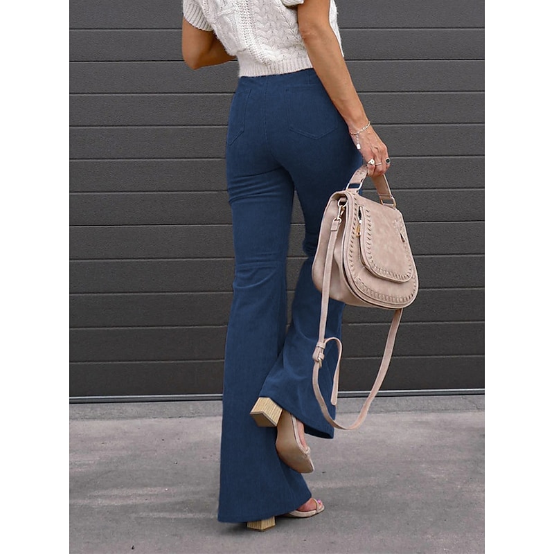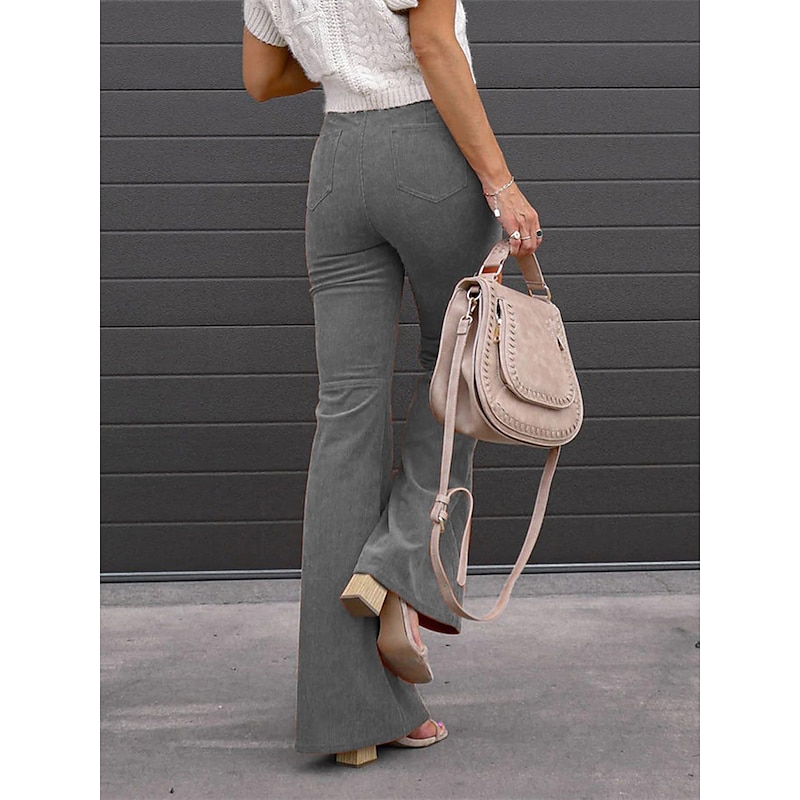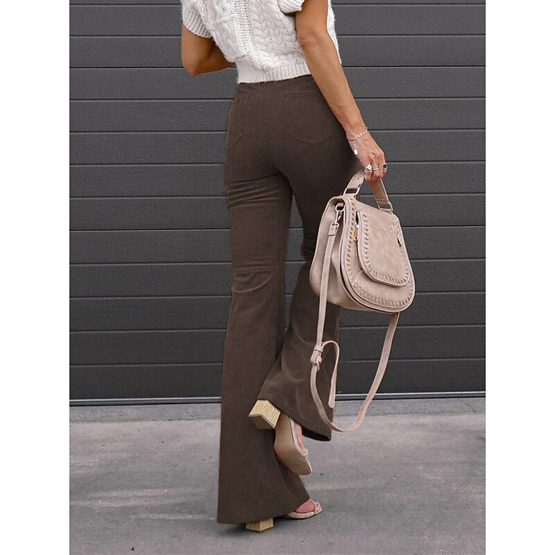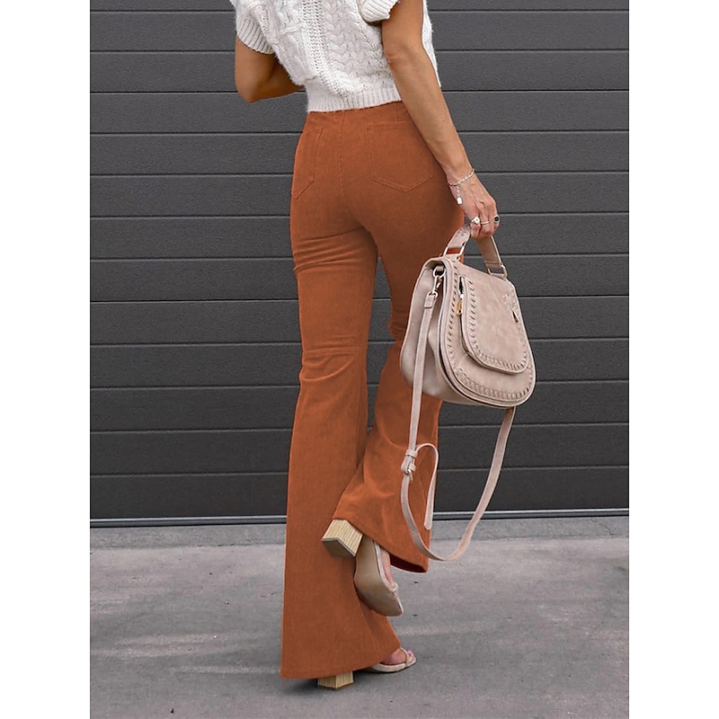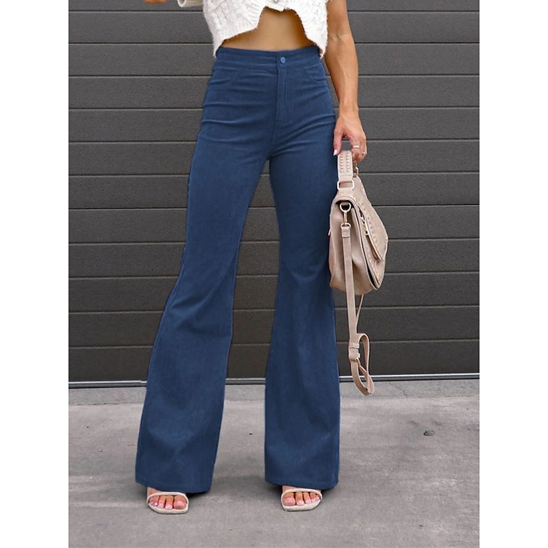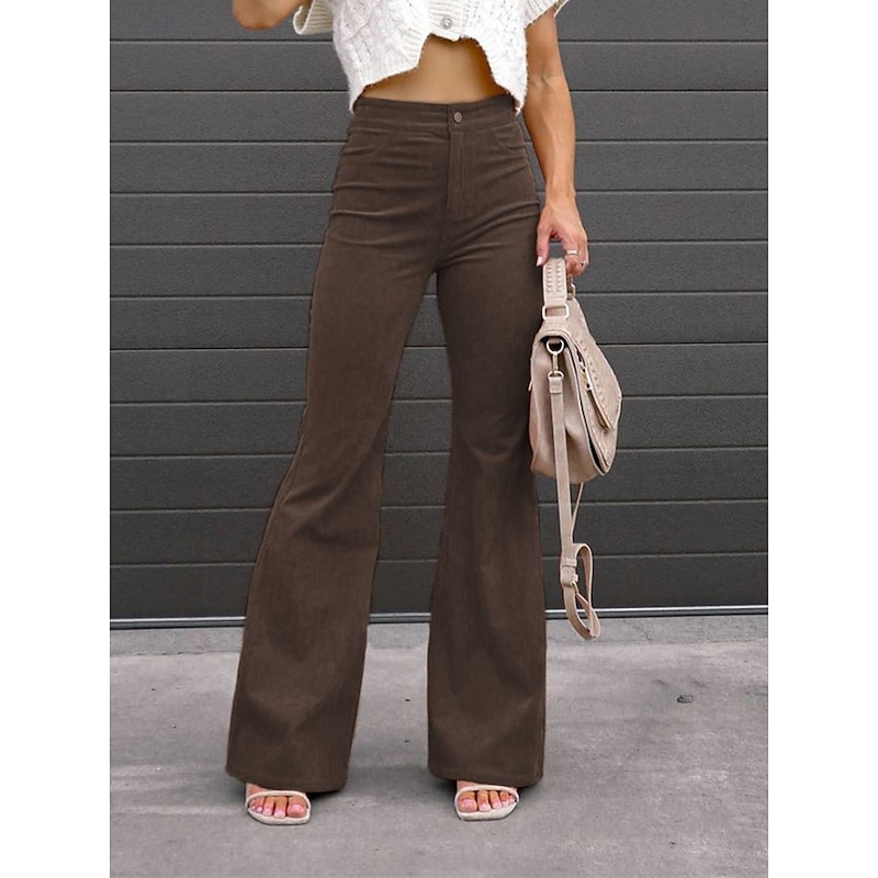 Women's Bell Corduroy Flare Pants Bottom Trousers Full Length Pocket High Waist Fashion Streetwear Xmas Wine Black S M Winter Autumn Fall 20