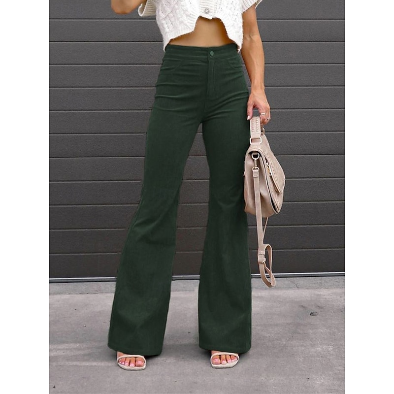 Women's Bell Corduroy Flare Pants Bottom Trousers Full Length Pocket High Waist Fashion Streetwear Xmas Wine Black S M Winter Autumn Fall 21
