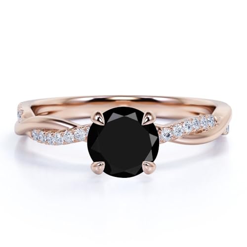 More information about 1ct 1.5ct 2ct Black Onyx Engagement Ring - Round Black Onyx Rings for Women White Yellow Rose 10K 14K 18K Gold 925 Sterling Silver with Moissanite Black Onyx Proposal Ring