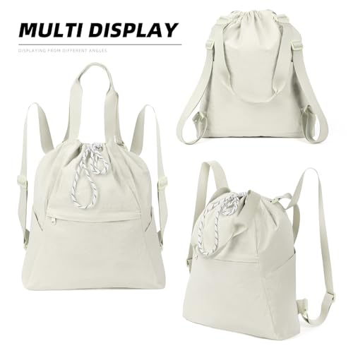 Valleycomfy Drawstring Backpack with Wet Pocket,Waterproof Drawstring Bag,Gym Backpack for Beach,Pool,Swim and Travel,Beige 7