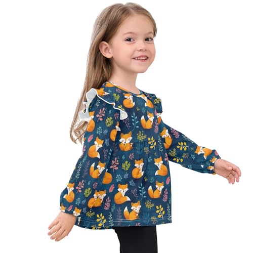 Orange Fox Leaves Girls Shirts Cotton Long Sleeve Ruffle Toddler Tee Tops 5