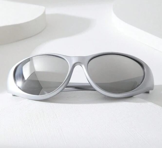 • Unique Futuristic Oval Sports Sunglasses: These unisex silver futuristic sunglasses have a super cool appearance and unique fashion style, made of impact resistant polycarbonate, which not only looks elegant but also ensures long-lasting performance, keeping up with your active lifestyle
