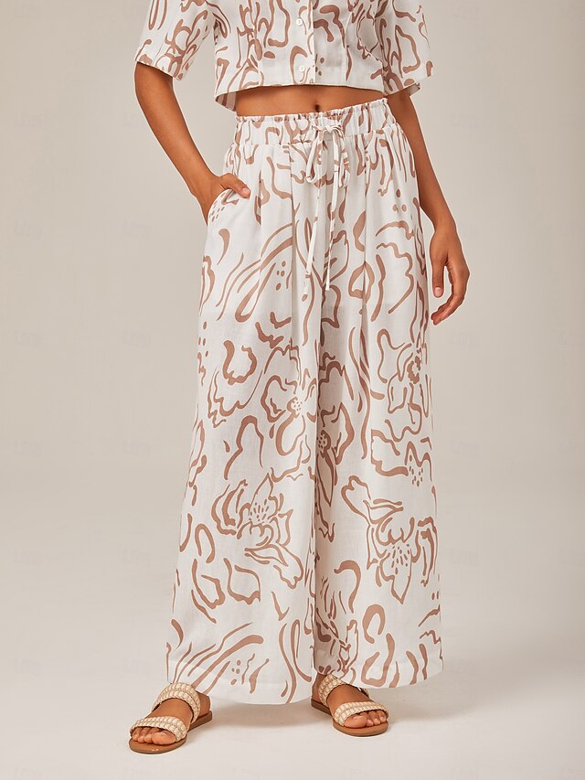 More information about Artistic Print Elastic Tie Waist & Linen-Like Fabric Wide-Leg Pants