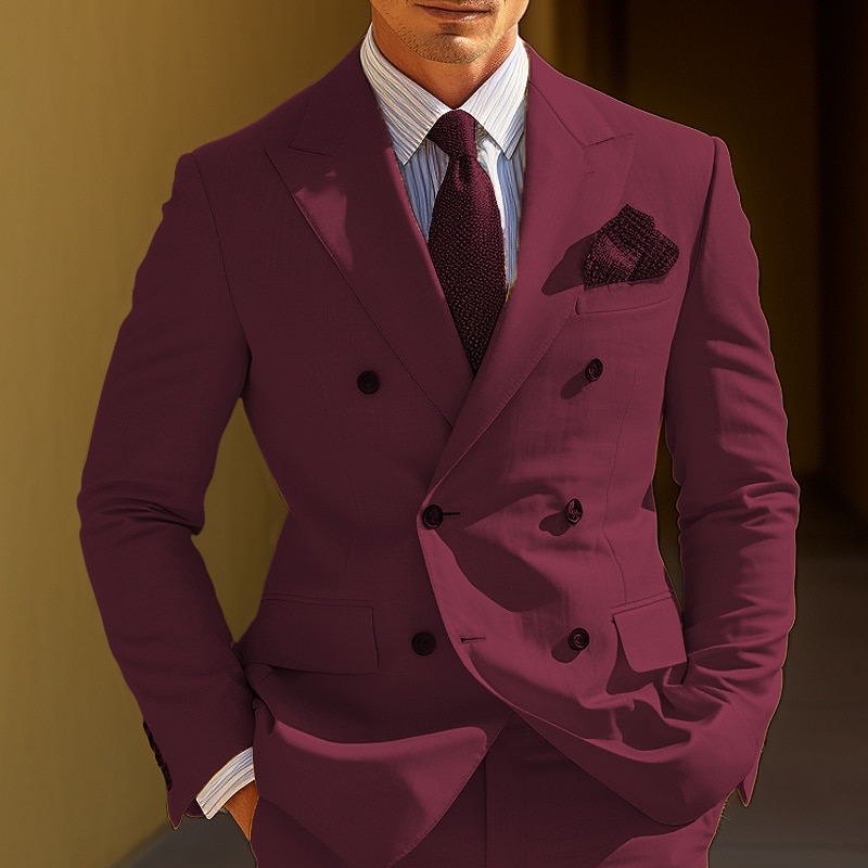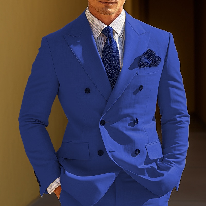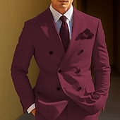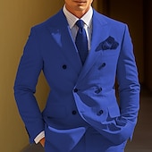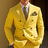 More information about Men's Graduation Blazer Cocktail Attire Tuxedo Business Wedding Party Fashion Casual Spring & Fall Polyester Plain Pocket Buttons Casual / Daily Double Breasted Blazer Yellow Burgundy Royal Blue