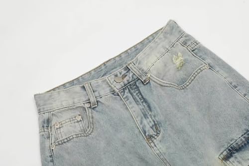 Men's Baggy Y2K Hip Hop Straight Leg Ripped Jeans Trousers Teen Boys 90s Loose Fit Cargo Denim Pants Streetwear 2