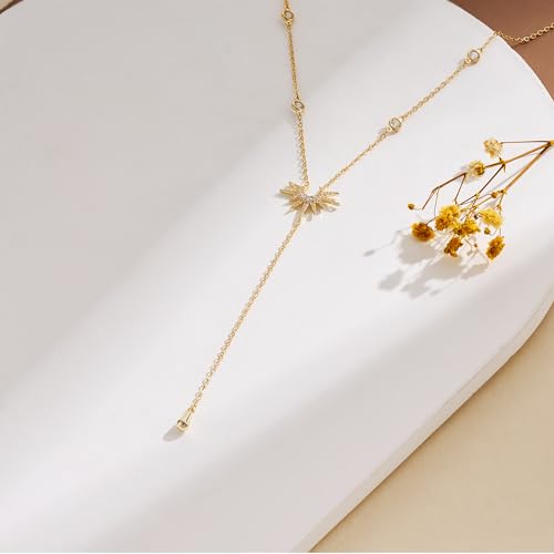 Lariat Long Necklace for Women Trendy Layered Y Necklace Dainty Pendant Drop Dangle Necklace Y-Shaped Necklace Simple CZ Necklace for Women Jewelry 6