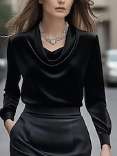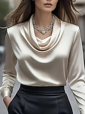 More information about Women's Shirt Elegant Dressy Satin Solid Color Plain Elegant Stylish Long Sleeve Asymmetrical Regular Tops Holiday Going out Ruched Black White Apricot Spring Fall