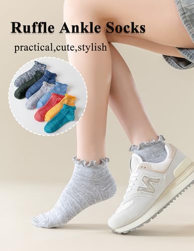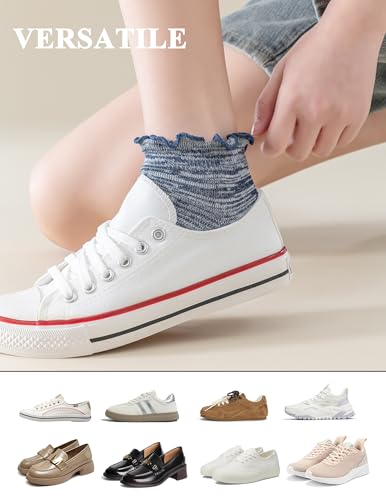 • 【8-Pack of Stylish Ankle Socks】 This set includes 8 pairs of cute, Ruffle-trimmed ankle socks, perfect for everyday wear or work. The adorable picot-edge design adds a charming touch to any outfit.