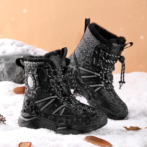 Girl Snow Boots Fashion Snap Lace-Up Warm High Top Girls Ankle Boots Outdoor Kids Waterproof Non-Slip Mid Calf Weather Shoes 4
