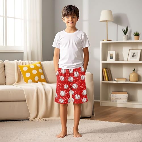 ALAZA Funny Baseball White Red Dot Pajama Shorts Elastic Waist Casual Sleep Shorts with Pockets Size 6-14 3
