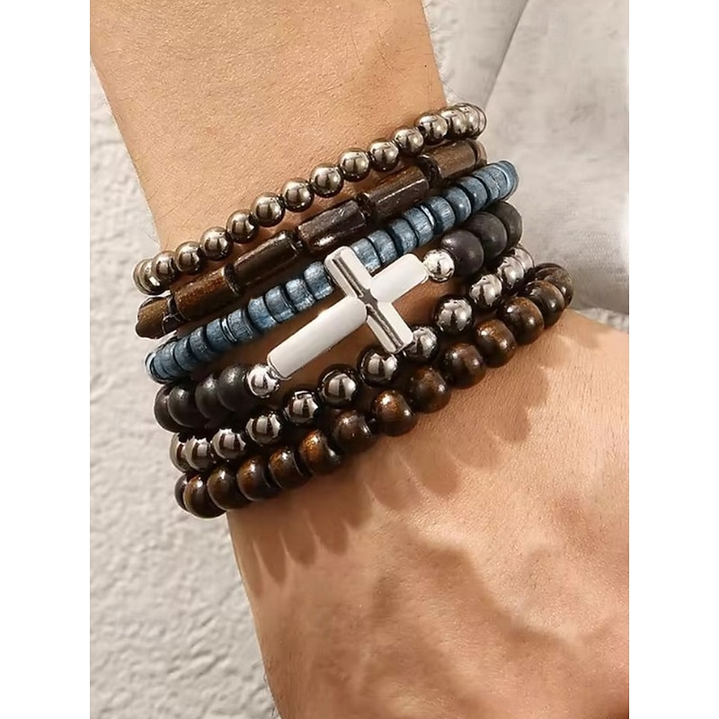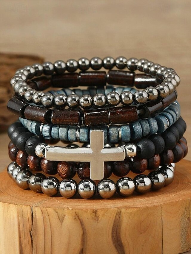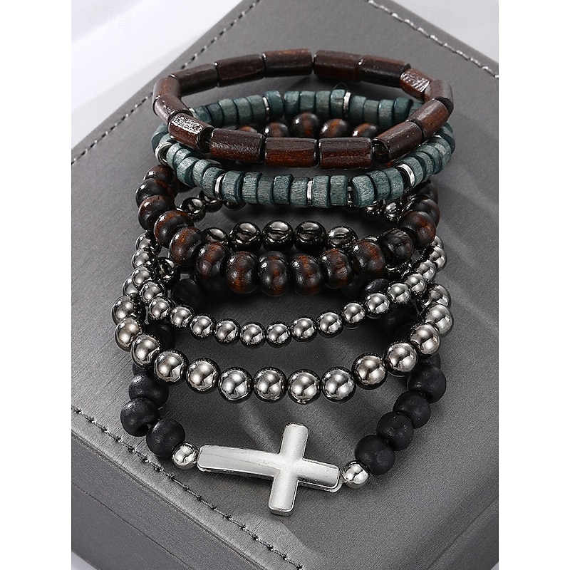 $9.99 - Men's Beaded Bracelet Set with Cross Charm, Multi-Layer Wooden and Metal Stretch Wristbands, Fashion Boho Jewelry for Casual, Party and Everyday Wear 2025. Shop for cheap Men's Jewelry online? Buy at lightinthebox.com on sale today!
